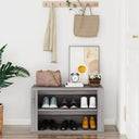 In diesem eleganten Schuhregal lassen sich deine Schuhe staubfrei aufbewahren, um für Ordnung in deinem Wohnraum zu sorgen! Robustes Material: Holzwerkstoff ist ein Material von außergewöhnlicher Qualität mit glatter Oberfläche, das sich durch Festigkeit, Stabilität und Feuchtigkeitsbeständigkeit auszeichnet. Aus Holzwerkstoff gefertigt, lässt sich dieses Schuhregal einfach reinigen.Viel Stauraum: Dieser Schuhschrank verfügt über 2 Fächer, die reichlich Platz für die Aufbewahrung aller Arten von Schuhen bieten.Stabile Oberplatte: Auf der Oberplatte dieses Schuhschranks kannst du deine Lieblingsdekorationen wie Vasen, Topfpflanzen usw. zur Schau zu stellen. Du kannst den Schuhschrank auch als Bank verwenden. Hinweis:Jedes Produkt wird mit einer Montageanleitung in der Verpackung für eine einfache Montage geliefert.