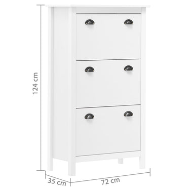Schluss mit Durcheinander! Lose Schuhpaare, die im Flur herumliegen, gehören jetzt endlich der Vergangenheit an. In diesem schlanken Schuhschrank kannst du deine Schuhe ordentlich und außer Sichtweite verstauen. Er passt auch in Schlafzimmer, Lagerraum oder andere Wohnräume. Aus massivem Kiefernholz gefertigt, ist dieser Schuhschrank stabil und langlebig. Er verfügt über 3 Fächer mit 3 Klapptüren.