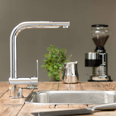 Nutze die LONDON Spültischbatterie mit herausziehbarem Auslauf von SCHÜTTE zum Händewaschen und Putzen! Diese aus Messing gefertigte Küchenarmatur hat eine lange Lebensdauer. Dank der Flexschläuche aus Metall, des schwenkbaren Auslaufs, des seitlichen Metallgriffs, der Keramikscheiben und der geräuscharmen sowie austauschbaren 40-mm-Kartusche ist diese Armatur für die meisten Spülen geeignet. Darüber hinaus ist dieser Spültischmischer auch mit einem ausziehbaren Auslauf mit Perlator ausgestattet, sodass du alles mit einer 150 cm langen ausziehbaren Spülbrause spülen und waschen können. Wenn du nach einer vielseitigen Armatur zum Händewaschen und Reinigen suchst, dann ist die Spültischarmatur LONDON die perfekte Option für dich.