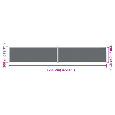 Die Garten-Seitenmarkise bietet mit ihrem großen Schirm eine effektive Möglichkeit, um mit ständigem Wind und tiefstehender Sonne fertig zu werden und schafft gleichzeitig Privatsphäre. Ihr schlichtes, dennoch stilvolles Design macht sie zu einer idealen Bereicherung für Ihren Garten, Ihre Terrasse bzw. Ihren Balkon. Unser Sichtschutz ist mit einer automatischen Rückrollfunktion ausgestattet und lässt sich in der Breite bis auf 1200 cm ausziehen. Der Outdoor-Schirm besteht aus UV-beständigem, reißfestem und wasserabweisendem Polyester mit PU-Beschichtung.
