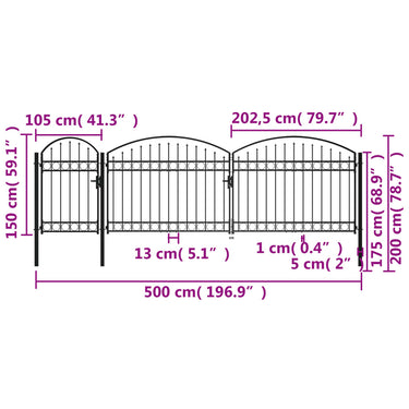 Tuinpoort met gebogen bovenkant 2,25x4 m staal zwart