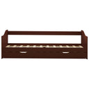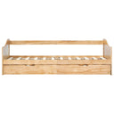Met een uitschuifbaar onderbed dat is uitgerust met 4 wieltjes, kan het meubel overdag gemakkelijk worden omgezet in een bank en 's nachts naar een comfortabel bed. Dit slaapbankframe maximaliseert het beschikbare vloeroppervlak en biedt tegelijkertijd slaapruimte voor twee personen, waardoor het een ideale keuze is voor mensen met beperkte leefruimte. Bovendien is het onderste bed uitgerust met een zijplank dat ervoor zorgt dat de gebruiker er tijdens het slapen niet uitrolt. Het hele bedframe heeft een stevige houten constructie, waardoor het zeer duurzaam is en geschikt is voor dagelijks gebruik. Het product is eenvoudig te monteren.