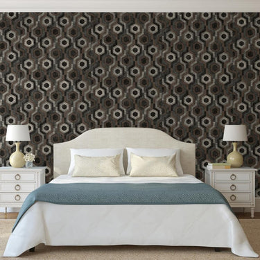 Het duurzame behang heeft hexagonaal design met 3D-effect door de verschillende kleurtinten en schaduwen. Het is bruin en wit. Het kan droog worden verwijderd zonder je muur te beschadigen.