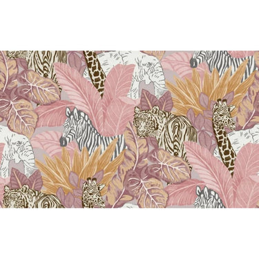 Deze Noordwand Good Vibes collectie, met behang met dieren uit de jungle in roze en oranje, staat bekend om zijn funky en kleurrijke patronen en krijtbehang.