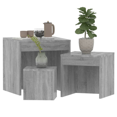 3-delige Tafeltjesset bewerkt hout hoogglans grijs