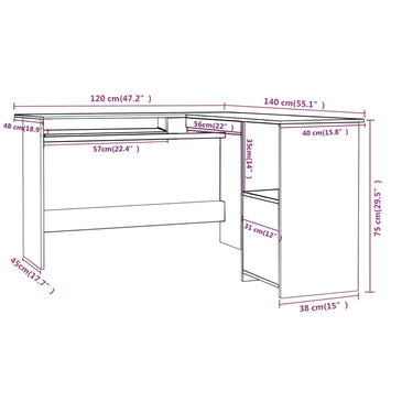 Hoekbureau L-vormig 120x140x75 cm bewerkt hout