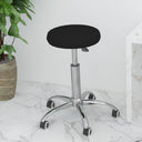 De draaistoel is bekleed met makkelijk schoon te maken kunstleer en is dik gevoerd, waardoor hij zeer comfortabel en duurzaam is. Het stalen frame zorgt voor stevigheid en stabiliteit. Dankzij het gasveermechanisme kan je de zithoogte naar wens aanpassen. De wieltjes kunnen 360 graden draaien zodat de stoel vrij in elke richting verplaatst kan worden.