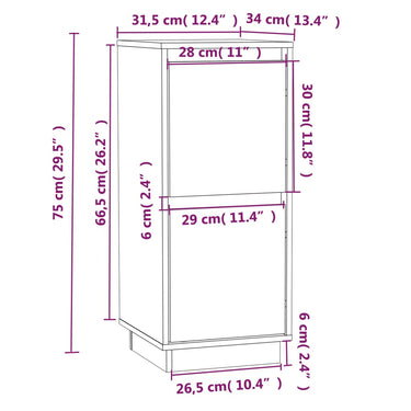 Dressoirs 2 st 31,5x34x75 cm massief grenenhout wit