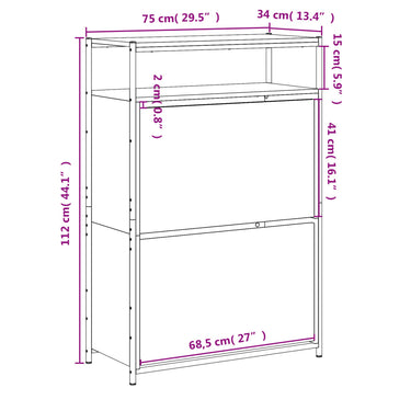 Schoenenkast 75x34x112 cm bewerkt hout eikenkleurig