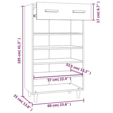 Schoenenkast 60x35x105 cm bewerkt hout wit