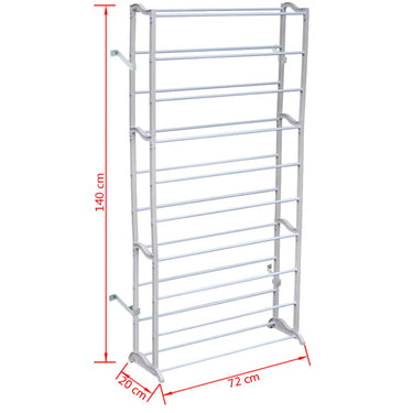 Deze schoenenrekken zijn gemaakt van wit kunststof met metalen balkjes en zijn geschikt voor 40 paar schoenen. Er zijn 10 'verdiepingen' om alle schoenen te ordenen. Ze hebben een compact formaat met kleine tussenwanden. De schoenenrekken kunnen eenvoudig gemonteerd worden zonder gereedschap.