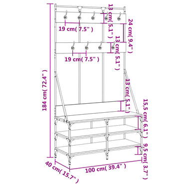 Kledingrek met schoenenrek 100x40x184 cm eikenkleurig