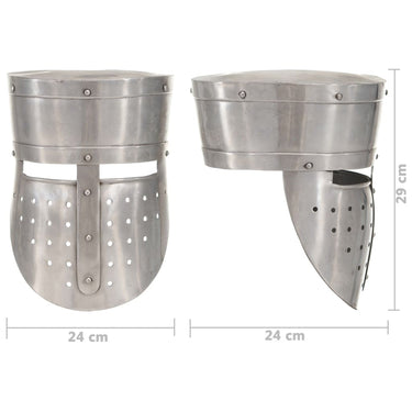 Deze replica helm met antiek-look is geweldig voor LARP (live action rollenspel), cosplay, halloweenfeesten, theatrale rekwisieten en historische opvoeringen.