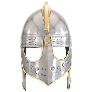 De helm is een exacte replica van een originele, Europese neushelm. Hij is gemaakt van 18-gauge staal en combineert antieke stijl met stevig materiaal, waardoor de helm opvallend is en perfect bij je riddersoutfit past. Onze Noormannenhelm is ontworpen om je neus goed te beschermen. Bovendien is hij een aantrekkelijk presentatieobject.