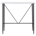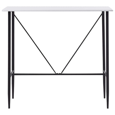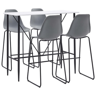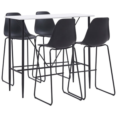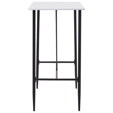 Het tafelblad is gemaakt van MDF, dat gemakkelijk te reinigen is. Het gepoedercoat stalen frame draagt bij aan de stabiliteit en robuustheid van de bartafel. De stoelen hebben een ergonomisch ontworpen zitting met geïntegreerde rugleuning in een moderne, gebogen look. Bovendien zijn ze eenvoudig te monteren.