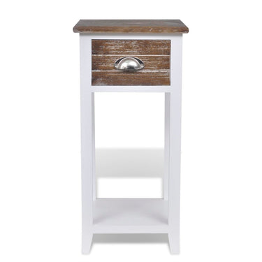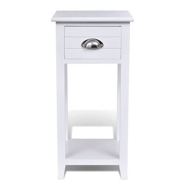 Dit nachtkastje met lade heeft een eenvoudig maar stijlvol ontwerp en kan worden gebruikt als nachtkastje of accenttafeltje.