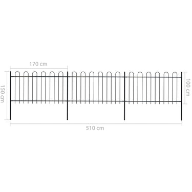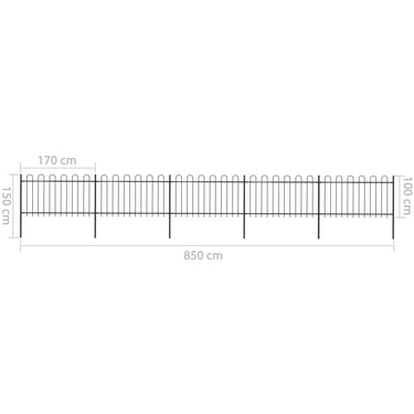 Tuinhek met ronde bovenkant 10,2x0,8 m staal zwart