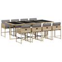 11-delige Tuinset met kussens poly rattan gemengd beige