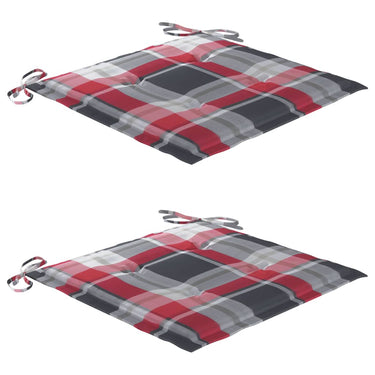 3-delige Bistroset met rood geruite kussens massief teakhout