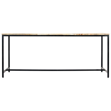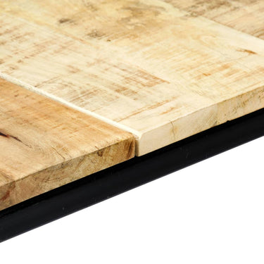Het tafelblad is gemaakt van massief ruw mangohout en is eenvoudig schoon te maken met een vochtige doek. Mangohout is een dicht en robuust hardhout met prachtige bruine of gouden strepen en contouren op het oppervlak. Elke stap van het proces wordt met de grootste zorg uitgevoerd, of het nu gaat om polijsten of lakken. De sterke, gepoedercoat ijzeren poten geven de tafel stabiliteit, stevigheid en een unieke industriële stijl. Het product is eenvoudig te monteren.