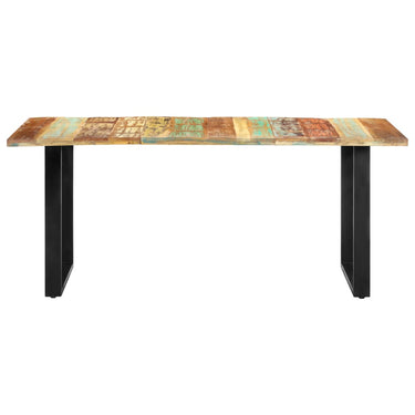 Deze eetkamertafel is gemaakt van massief teruggewonnen hout dat afkomstig is van balken, vloeren en steunbalken van oude gebouwen die afgebroken zijn. Het bestaat uit verschillende houtsoorten, zoals grenen, teak, beuken, eiken, ceder, mangohout en acacia. Dit betekent dat het gerecyclede hout de kenmerken van deze verschillende houtsoorten behoudt. Gerecycled hout is al verouderd, verweerd en gedroogd, en krimpt en buigt dus niet meer. Gebruikssporen en de zichtbare nerfstructuur geven de tafel zijn eigen geschiedenis en een unieke uitstraling. Het uitstekende vakmanschap draagt bij aan de spectaculaire retro stijl van de tafel. De gepoedercoat stalen poten maken de industriële look compleet. Elke stap van het proces wordt met de grootste zorg uitgevoerd, of het nu polijsten of lakken is. Onze eettafel is eenvoudig te monteren.