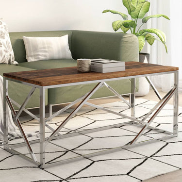 Salontafel roestvrij staal gerecycled hout zilverkleurig