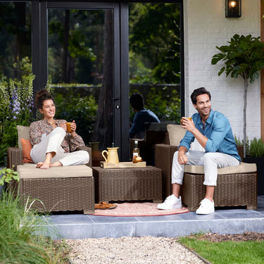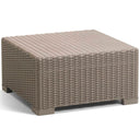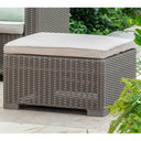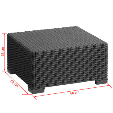 Hij heeft een vierkante vorm en is gemaakt van weer- en waterbestendige hars dat een luxe en gedefinieerde rattan-textuur is gegeven. Je hoeft je geen zorgen te maken over dit onderhoudsvrije materiaal. Het zal niet roesten, rotten of bladderen. Deze veelzijdige tuinmeubel kan ook gebruikt worden als tafel of als voetenbankje als je het meegeleverde, comfortabele zitkussen verwijdert.