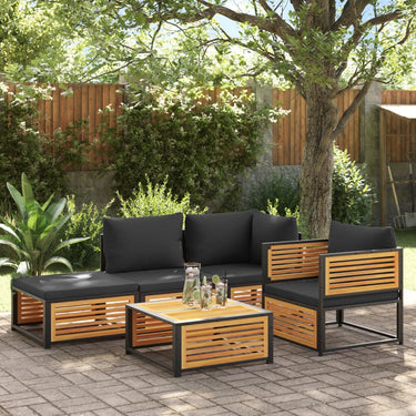 - Materiaal: massief acaciahout met een olieafwerking en gepoedercoat staal