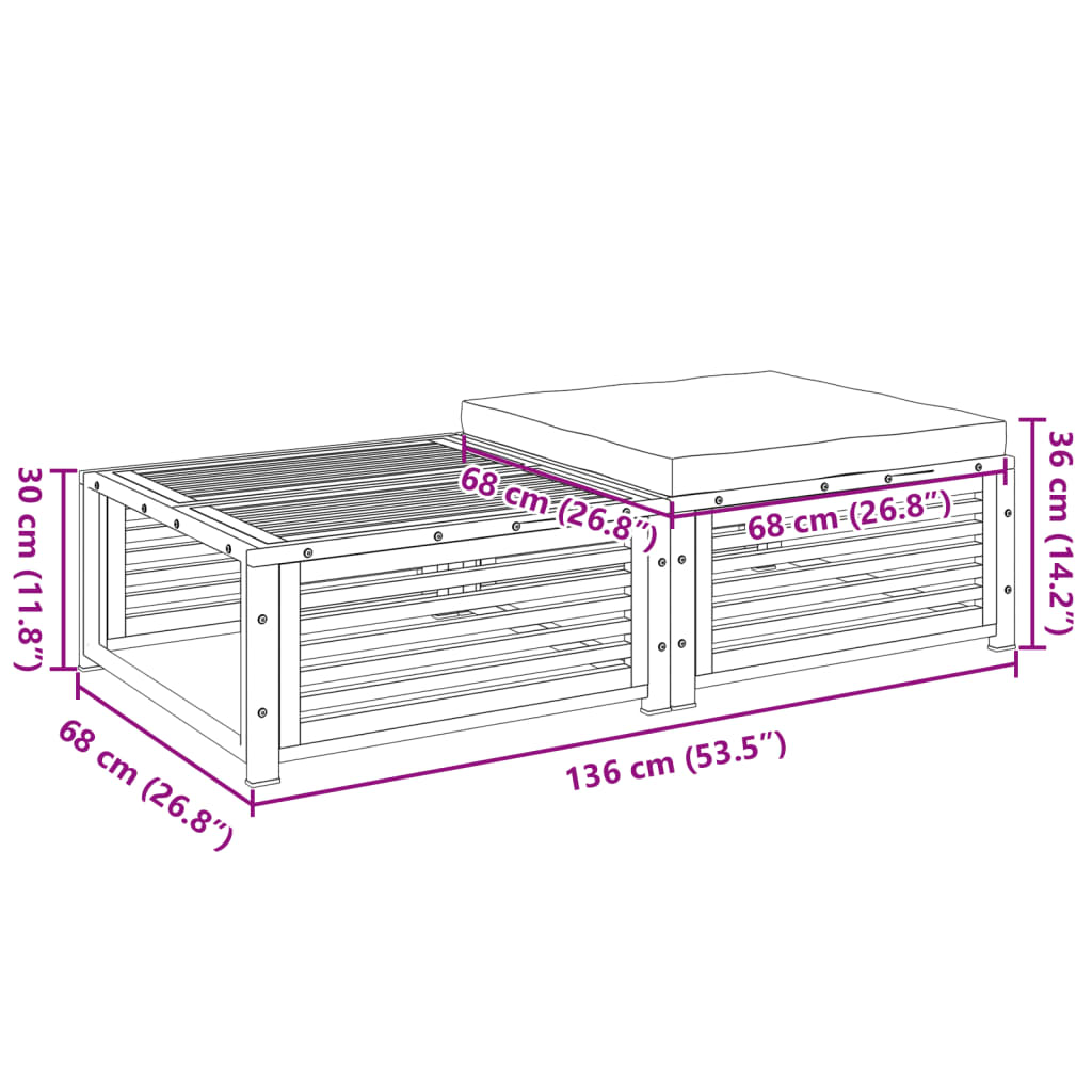 - Robuust en stabiel frame: massief acaciahout is sterk en duurzaam. De diverse kleuren en unieke nerfpatronen geven het een aantrekkelijke uitstraling. Dankzij de goede stabiliteit en weerbestendigheid is het ideaal voor meubilair voor binnen en buiten. Het gepoedercoat stalen frame zorgt ervoor dat het tuinmeubel sterk en stabiel is voor dagelijks buitengebruik.