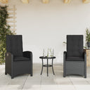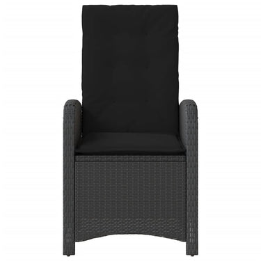 Tuinstoel verstelbaar met kussens poly rattan zwart
