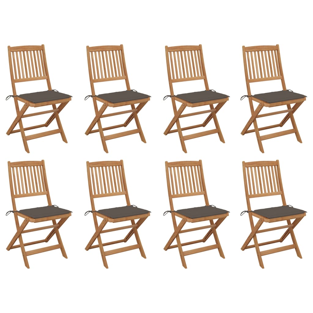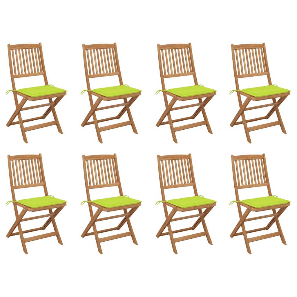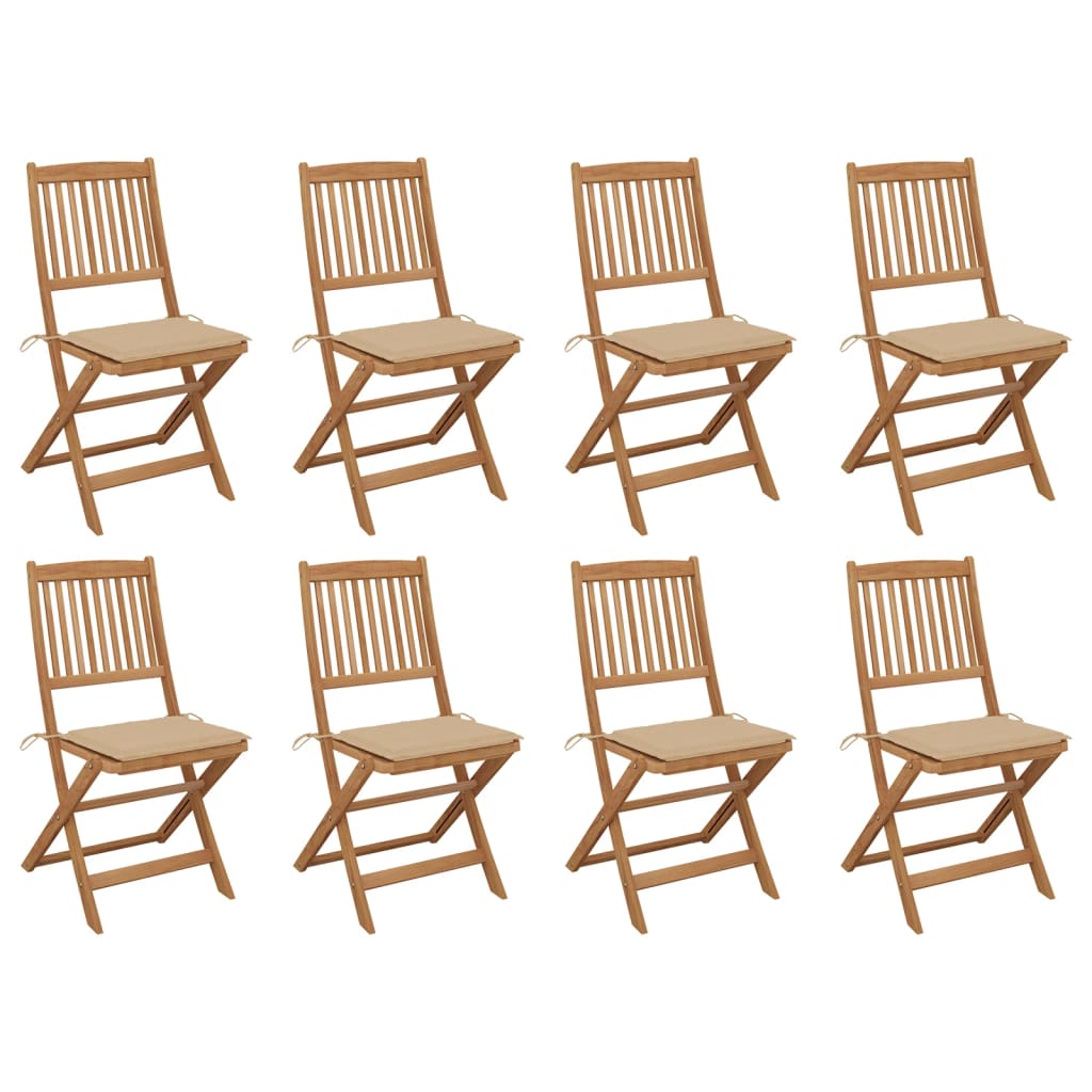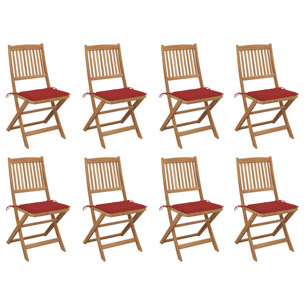 Deze massief acaciahouten inklapbare stoelen met kussens zijn perfect om op te ontspannen en in je tuin of op je terras van de zon te genieten.