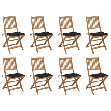 Deze tuinstoelen zijn gemaakt van massief acaciahout waardoor ze stevig en stabiel zijn. Massief acaciahout heeft de kracht om veel gewicht te dragen en is bestand tegen slijtage. Deze buitenstoelen bieden jarenlange ontspanning. Bovendien kunnen de stoelen worden ingeklapt om ruimte te besparen wanneer ze niet worden gebruikt. De meegeleverde kussens bieden extra comfort. Elk kussen heeft twee touwtjes om het stevig op de stoel te bevestigen.