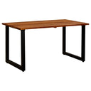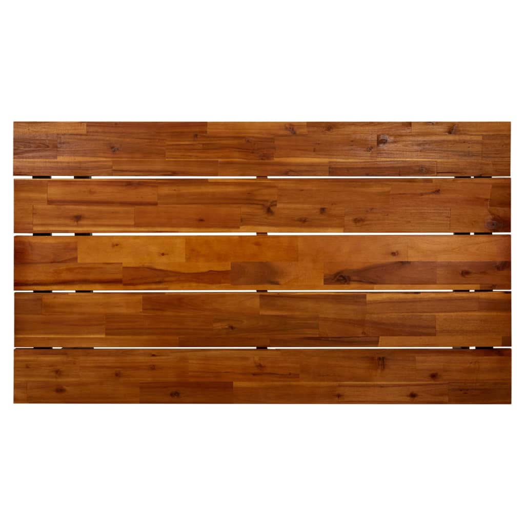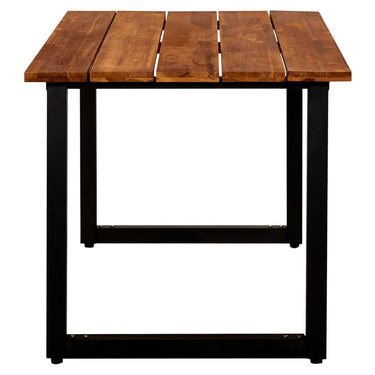 De tuintafel heeft een tafelblad van massief acaciahout met olieafwerking. Acaciahout is een tropisch hardhout dat weerbestendig en zeer duurzaam is. De gepoedercoat metalen constructie is corrosie- en roestbestendig. Hij geeft de tafel een industriële uitstraling.
