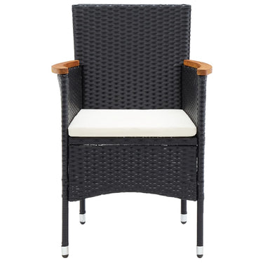 De eettafel is gemaakt van massief acaciahout met een olieafwerking, waardoor hij stabiel, duurzaam en gemakkelijk te onderhouden is. De eetstoelen hebben een gepoedercoat stalen frame bedekt met weerbestendig PE-rattan waardoor ze stevig en gemakkelijk schoon te maken zijn. Elke stoel is ontworpen met gebogen rug- en armleuningen voor een meer ergonomische vorm. De armleuningen zijn prachtig gedecoreerd met massief acaciahout voor een rustieke charme. De dik gevoerde kussens bieden ultiem zitcomfort.