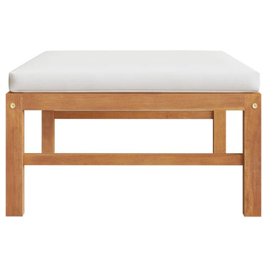 Middenbank met crèmekleurige kussens massief teakhout