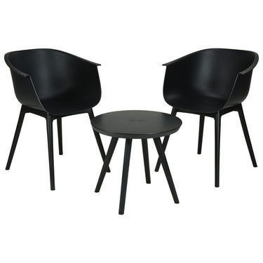 - Stevige materialen: deze tuinmeubelset is gemaakt van polypropeen. Het is duurzaam en het biedt weerstand tegen de elementen. Het tafelblad is gemaakt van ABS-kunststof. Het biedt een strakke uitstraling en het is tegelijkertijd een stevig oppervlak voor je warme en koude dranken.