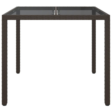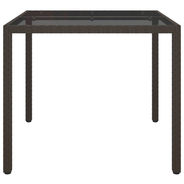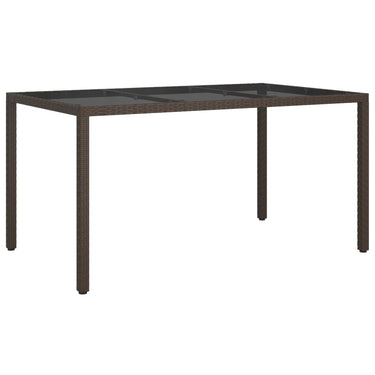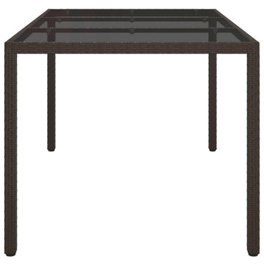 Tuintafel 150x90x75 cm gehard glas en poly rattan bruin