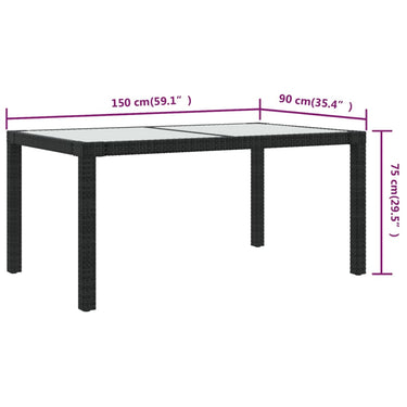 Tuintafel 150x90x75 cm gehard glas poly rattan