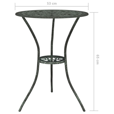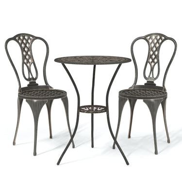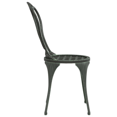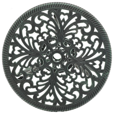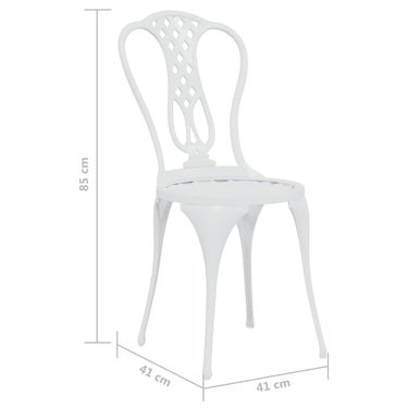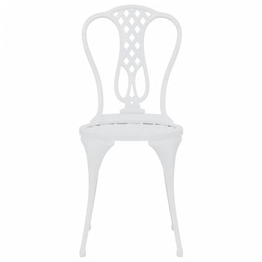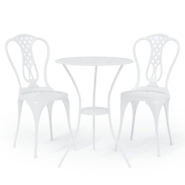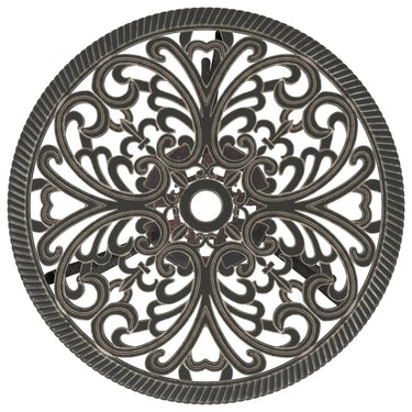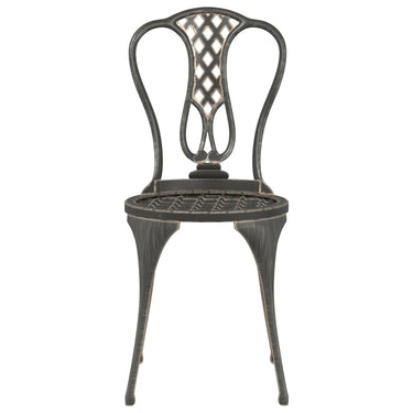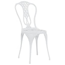 De terrasset is gemaakt van gietaluminium, wat weerbestendig en zeer duurzaam is. Het gedetailleerde bloemenpatroon geeft een romantisch vleugje aan je buitenruimte.