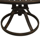 De tuinstoelen en -tafel zijn gemaakt van gietaluminium waardoor ze zowel stevig als duurzaam zijn. Het roest- en weerbestendige materiaal maakt de meubelset ideaal voor buitengebruik. Deze buitenstoelen hebben stabiele, ronde basissen waardoor de zittingen soepel en comfortabel kunnen draaien. De prachtige patronen maken van de set een elegante aanvulling op je buitenruimte. Bovendien heeft de tafel een parasolgat waar je parasol perfect in past, om je te beschermen tegen zon of regen.