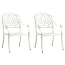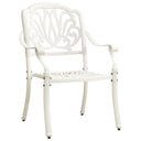 De tuinstoelen en -tafel zijn gemaakt van gietaluminium waardoor ze zowel stevig als duurzaam zijn. Het roest- en weerbestendige materiaal maakt de meubelset ideaal voor buitengebruik. De prachtige patronen maken van de set een elegante aanvulling op je buitenruimte. Bovendien heeft de tafel een parasolgat waar je parasol perfect in past, om je te beschermen tegen zon of regen.