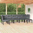 7-piece lounge set poly rattan black and gray