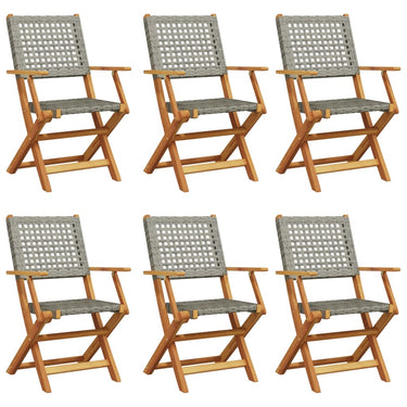 Tuinstoelen 6 st inklapbaar poly rattan en massief hout grijs