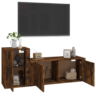 2-delige Tv-meubelset bewerkt hout gerookt eikenkleurig