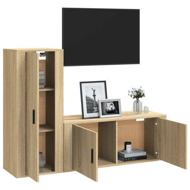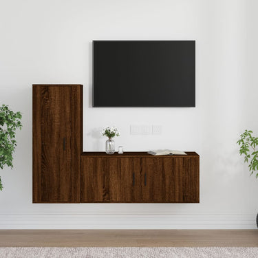 2-delige Tv-meubelset bewerkt hout gerookt eikenkleurig