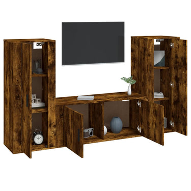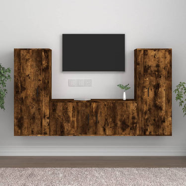 3-delige Tv-meubelset bewerkt hout gerookt eikenkleurig