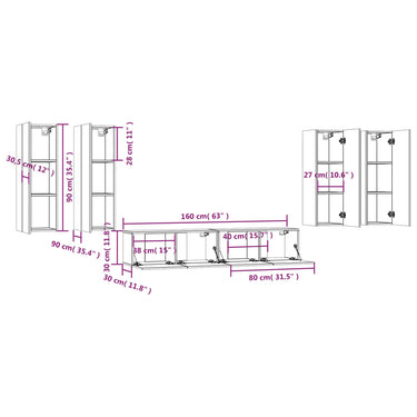 - 4 x televisiemeubel: 30,5 x 30 x 90 cm (B x D x H)