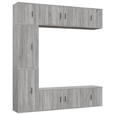 7-delige Tv-meubelset bewerkt hout grijs sonoma eikenkleurig
