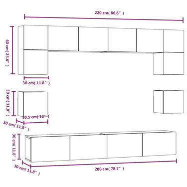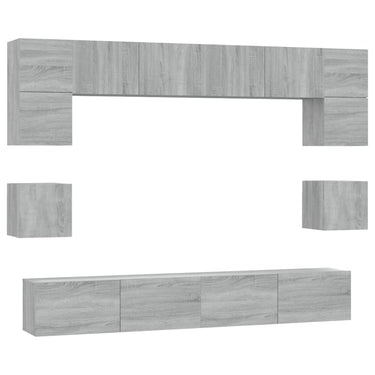 8-delige Tv-meubelset bewerkt hout betongrijs