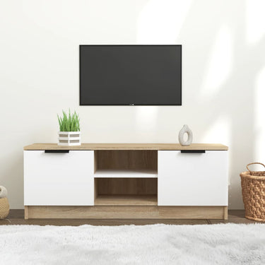 Dit televisiemeubel heeft een strak en trendy design, waardoor het een decoratieve en praktische aanvulling op je interieur is.